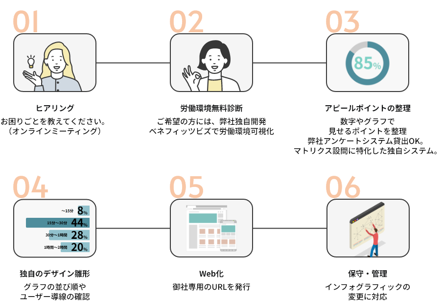 ※独自開発した「労働環境診断ツール」(無料)で小規模企業や個人事業主様もサポートします!!